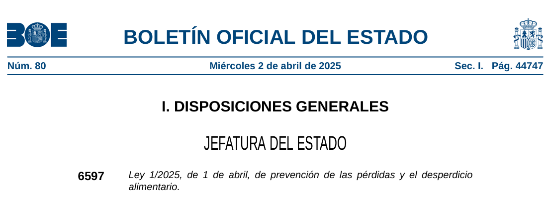 The Official State Gazette (BOE) has published Law 1/2025, on the prevention of food loss and waste—a pioneering regulation in Spain that requires all stakeholders in the food chain to implement specific prevention plans and prioritize the donation of surpluses for human consumption.